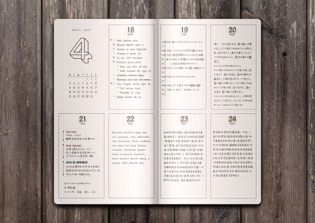 TAKE A NOTEのRECORDシリーズ「MASTER バレットジャーナル」は、バレットジャーナルノート術を中心に、いつでもメモを残すために利用でき、持ち運びしやすいノートです。